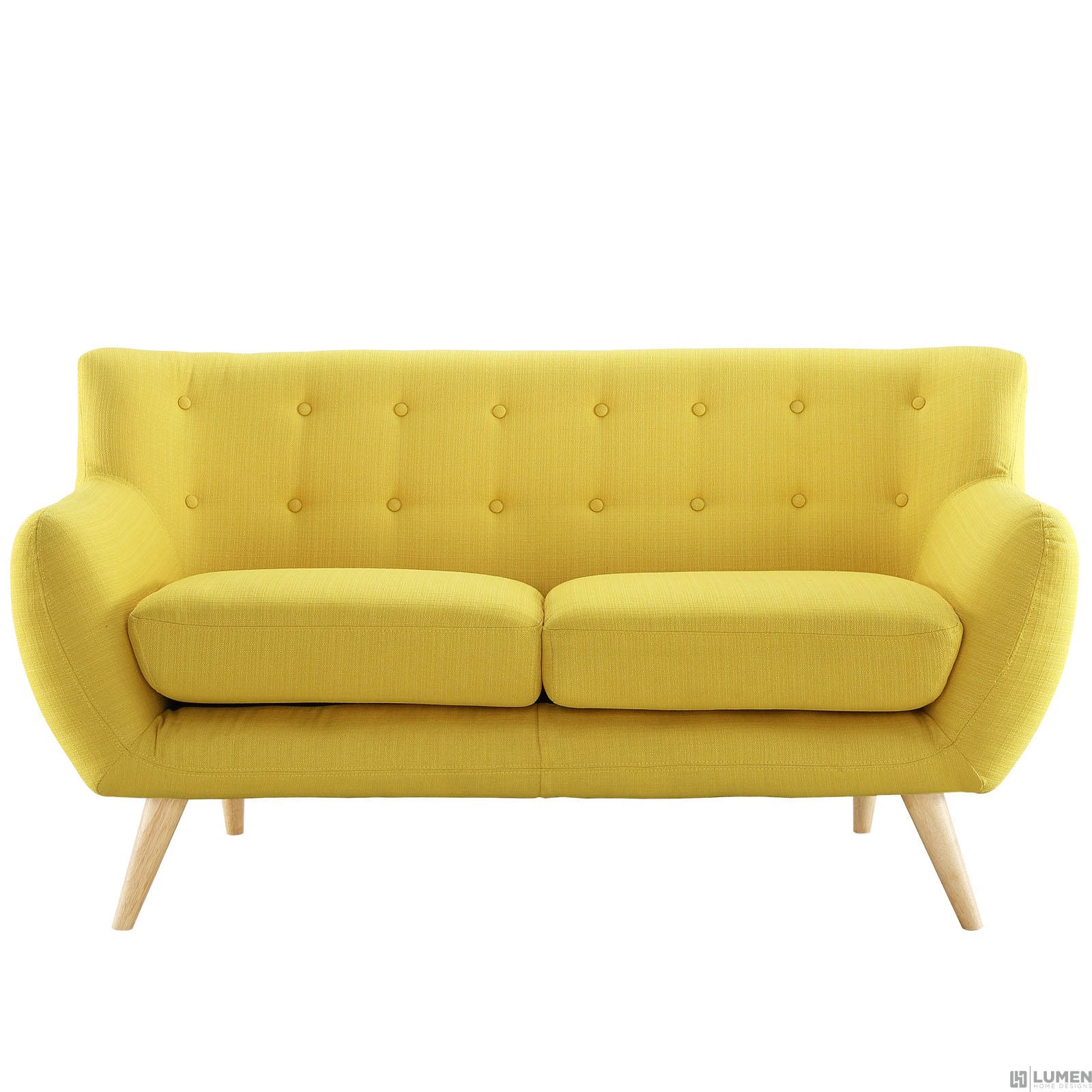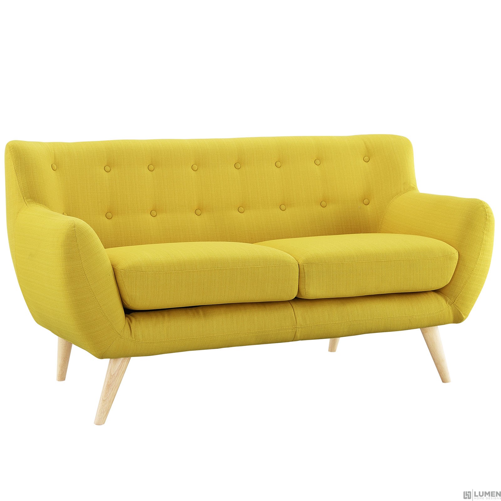 Mid-century modern style Loveseat Natural color rubber wood legs Non-marking foot caps 100% polyester material No assembly required Chair Weight Capacity - 441 lbs.