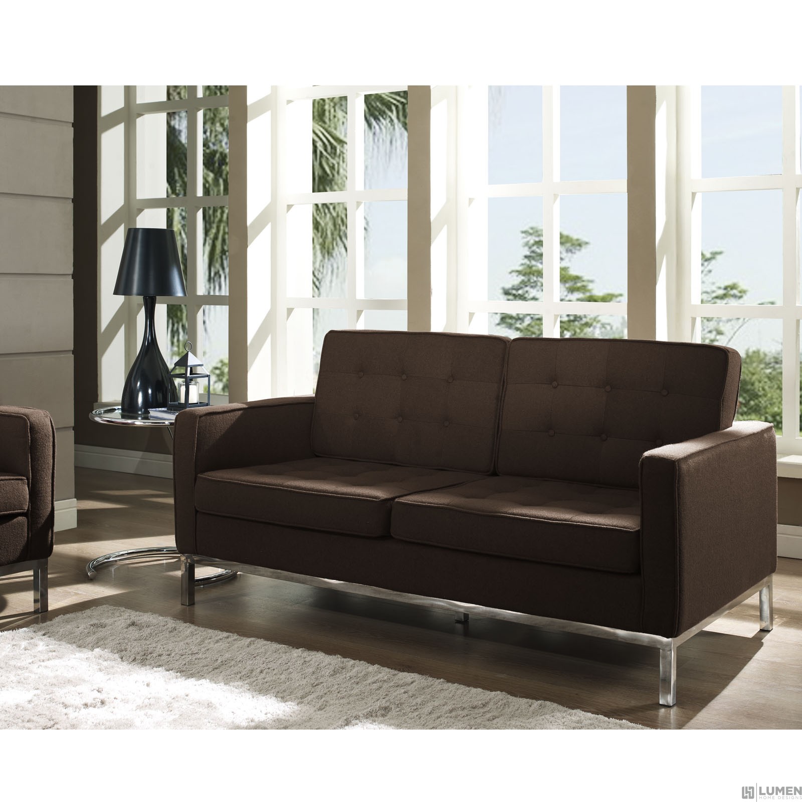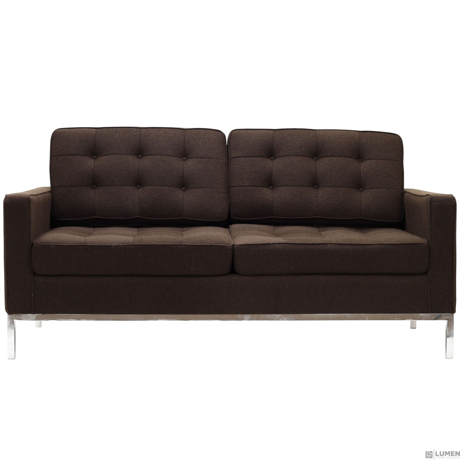 Short Description Mid-Century Modern Loveseat Rich Wool Upholstery Tufted Seat and Back with Buttons Tubular Stainless Steel Frame Foot caps to prevent scratching
