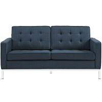 Fine Polyester Upholstery Tufted Seat and Back with Buttons Tubular Stainless Steel Frame Removable Zippered Cushion Cover Non-Marking Foot Pads