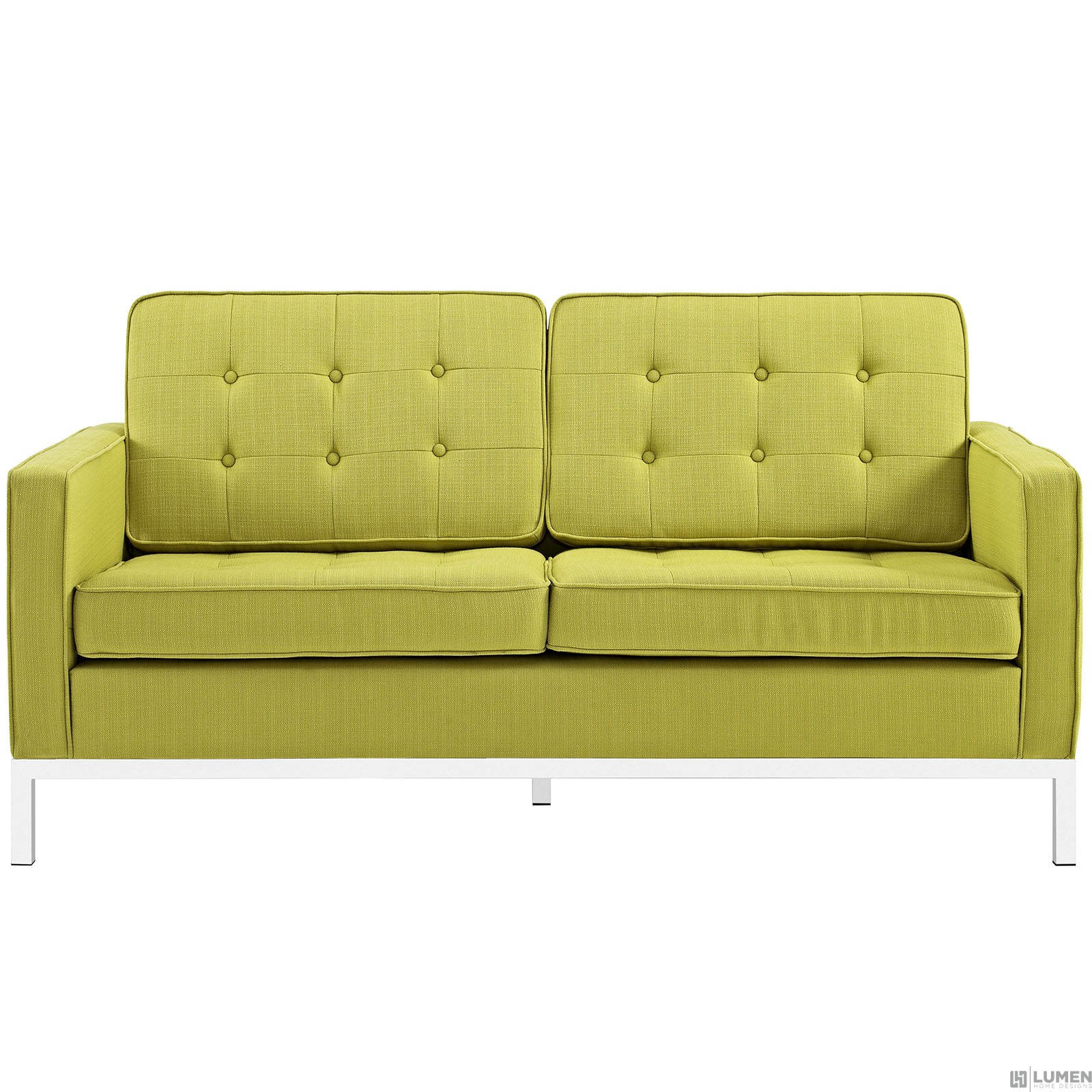 Short Description Fine Polyester Upholstery Tufted Seat and Back with Buttons Tubular Stainless Steel Frame Removable Zippered Cushion Cover Non-Marking Foot Pads