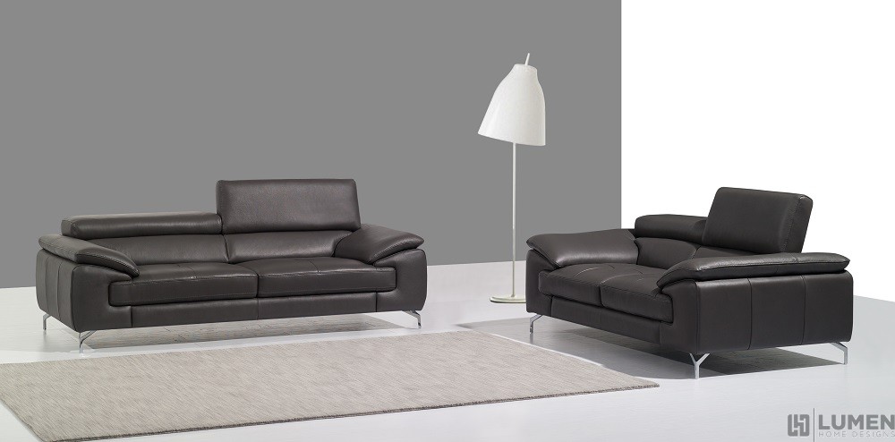 Short Description IIf you're looking for a compact seating option for your living room, pick this style loveseat. It features deep seats and super soft back cushions, all covered in premium Italian leather for long lasting comfort. Plus, adjustable ratchet headrests allow everyone to relax in style. Strong stainless steel legs complete this look. The dimensions of this loveseat make it suitable for spaces of any size, especially those on the smaller side. It can comfortably sit up to two people. This piece is available in a variety of neutrals to match your existing color palette: black, coffee, grey, peanut or white. Essentials about this piece: • Expertly upholstered in authentic Italian leather. • Adjustable ratchet headrests. • High elastic springs. • High density foam. • Some assembly required. • Color scheme: Black, Coffee Brown, Grey, Peanut or White. • Dimensions: 36.2" H x 73" L x 42" D. • Each sofa sold separately.