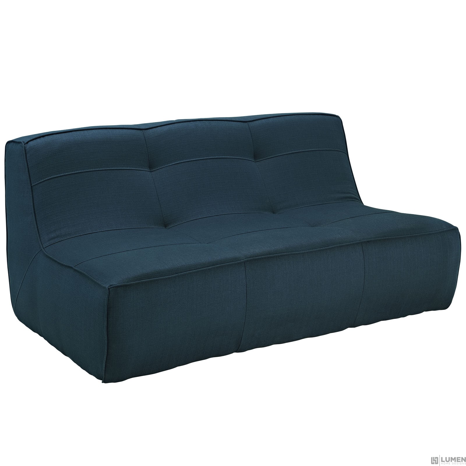 Short Description Modern sectional sofa Upholstered in fine fabric Foam padded cushions Slight trim and button tufting Wipe clean with dry cloth Solid wooden legs Black plastic foot glides