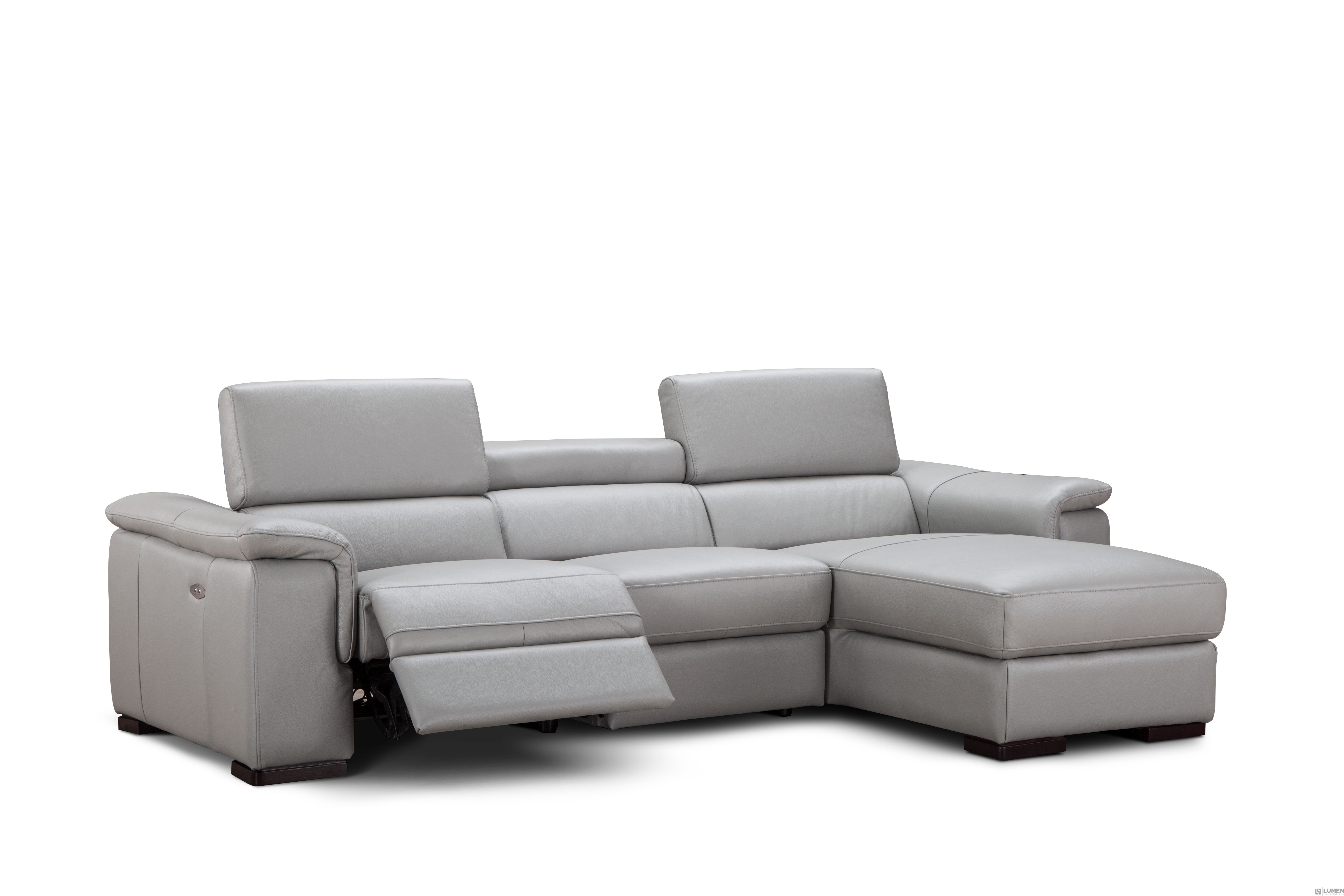 Short Description If you've got a small space in dire need of comfort and functionality, we highly recommend our compact recliner sectional. It features extra deep seats, plump cushions, a chaise plus a power recliner option so you can truly relax. For added versatility, its headrests are all fully adjustable, and can be raised or lowered separately. This mighty sectional will look right at home in any living room, family room or entertainment space. Its dimensions make it suitable for any size room, but we especially recommend it for compact spaces. Choose your side: it's available in both right or left facing configuration, both in a neutral shade of light grey. Essentials about this piece: • Expertly finished in authentic Italian leather and stainless steel. • Right or left facing chaise. • Fully reclining seat. • Adjustable headrest and back height. • High elastic springs. • High density foam. • Some assembly required. • Color scheme: Light grey. • Dimensions: 37.7" H x 113" L x 69" D.