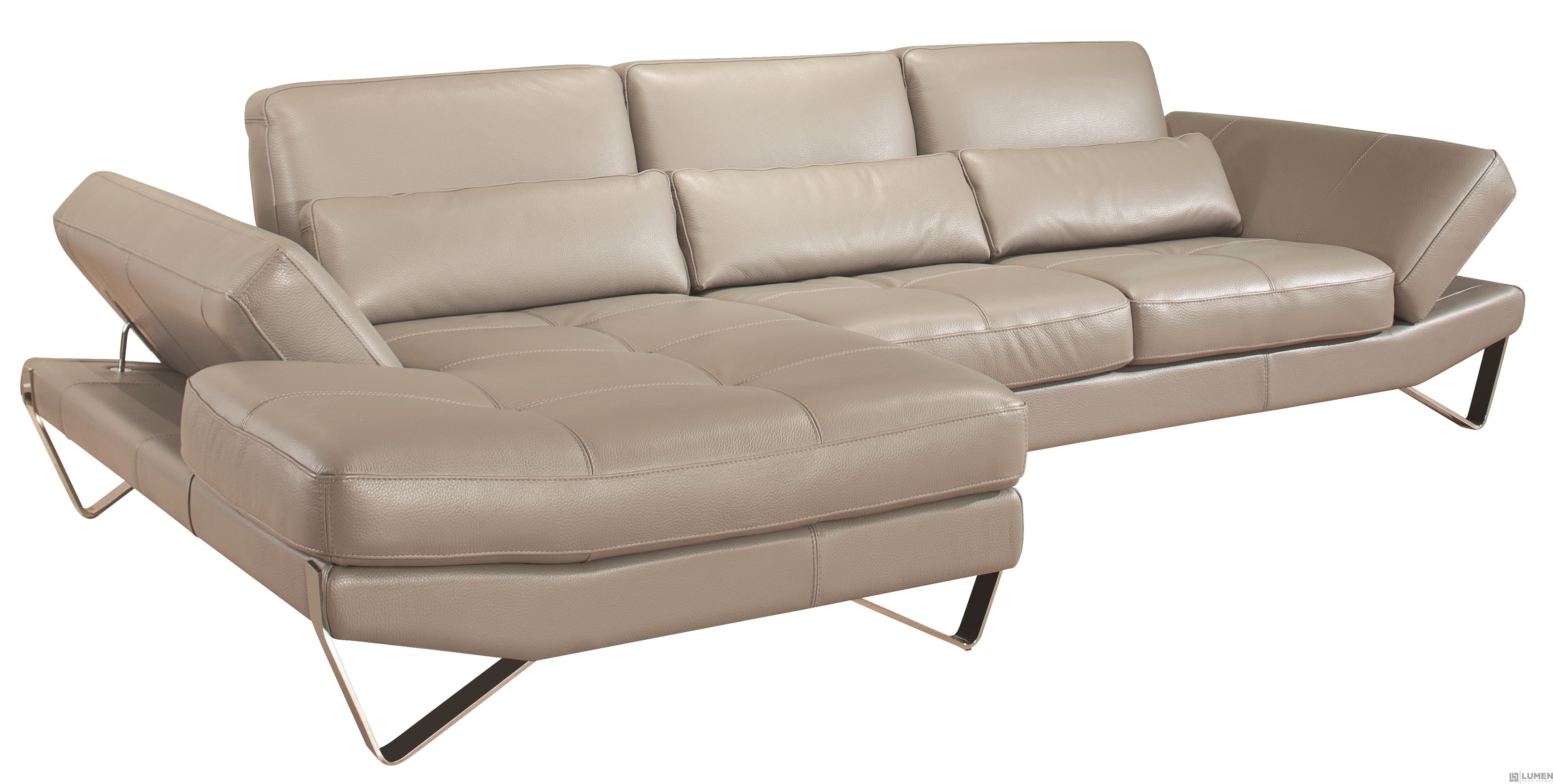 Short Description The ample seating spaces of this comfy sectional make it a great option for both family and commercial spaces. It features super soft cushions upholstered in authentic Italian leather, with a family friendly topcoat guarding it against spills and daily wear. Its visible tufting and double stitching add visual interest. Our sofa can comfortably sit up to 6 people. This modern sectional will look right at home in any living room, family room or entertainment space. Its dimensions make it suitable for any size room. Essentials about this piece: • Expertly finished in authentic Italian leather and stainless steel. • Left facing layout. • High elastic springs. • High density foam. • Some assembly required. • Color scheme: Stone grey. • Dimensions: 31" H x 112" L x 65" D. • Other furniture not included.
