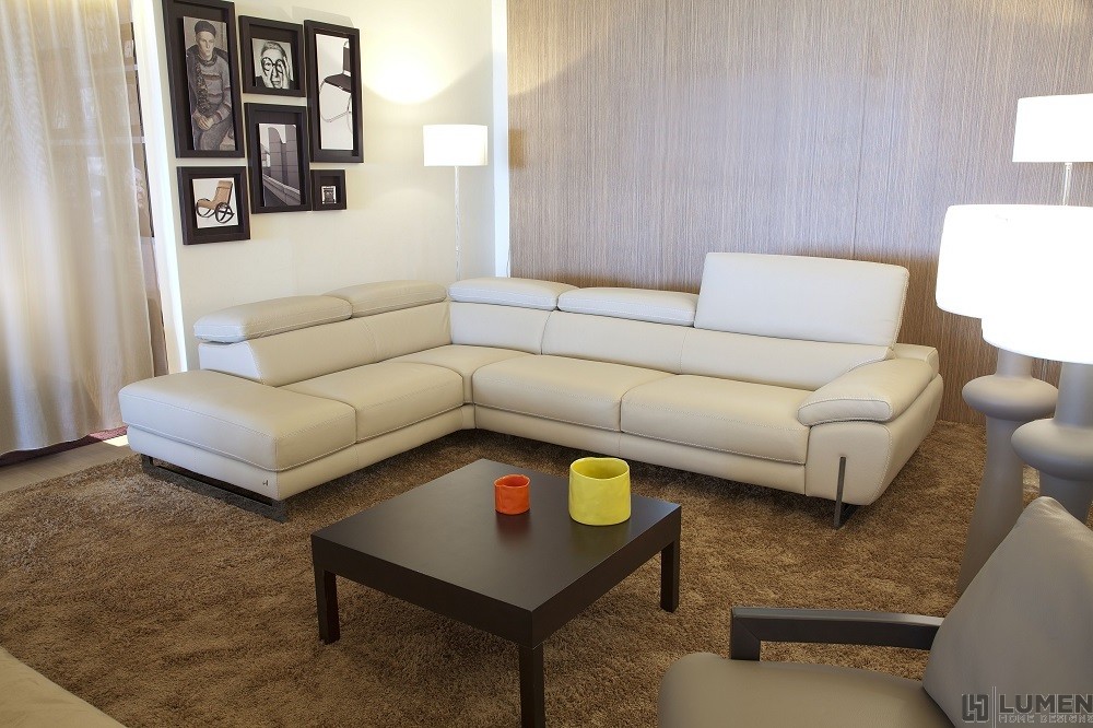 Classic forms and crisp tailoring make our leather sectional the best seat in the house. It features deep seats with extra padded memory foam cushions for superior comfort. Plus, all headrests are fully adjustable, and can each be lowered independently. Our sofa can comfortably sit up to 6 people, so the whole family can gather round at the same time. This classic sectional will look right at home in any living room, family room or entertainment space. Its dimensions make it suitable for any size room. Choose your side: it's available in both right or left facing configuration, both in Beige. Essentials about this piece: • Expertly finished in authentic Italian leather and stainless steel. • Right or left facing layout. • Adjustable headrest and back height. • High elastic springs. • High density memory foam. • Some assembly required. • Color scheme: Beige. • Dimensions: 28.3" H x 119.9" L x 44.4" D.
