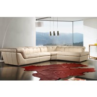 Short Description Classic sofa lines get a modern refresh through Italian leather upholstery. Finished in rich neutral shades, this sectional comes fully tufted with durable memory foam inserts. The leather is all coated making it spill proof and easy to clean. For extra comfort, our sectional features adjustable headrests, which can each me lowered independently. This classic sofa will look right at home in any living room, family room or entertainment space. Its dimensions make it suitable for any size room. Choose your side: it's available in both right or left facing chaise configuration. Choose your color: beautifully upholstered in premium beige, chocolate brown or grey leather. Essentials about this piece: • Expertly finished in authentic Italian leather. • Left or right facing layout. • Adjustable headrests. • High elastic springs. • High density foam. • Some assembly required. • Color scheme: Beige, Chocolate brown or Grey. • Dimensions: 36" H x 124" L x 97" D. • Other furniture sold separately.