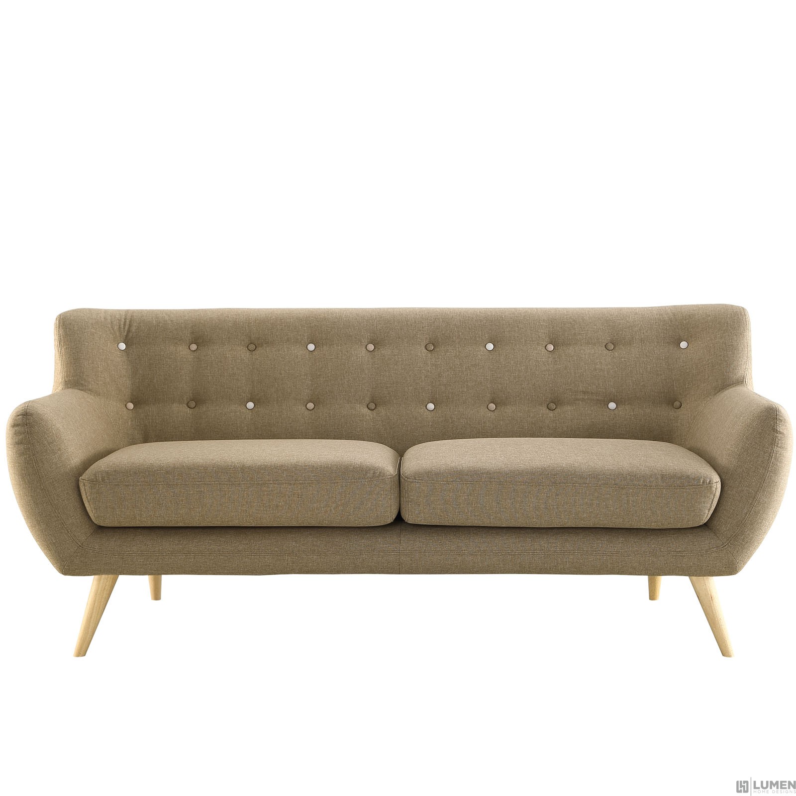 Mid-century modern style Sofa Natural color rubber wood legs Non-marking foot caps 100% polyester material Chair Weight Capacity - 662 lbs. No assembly required Flame Retardant Foam