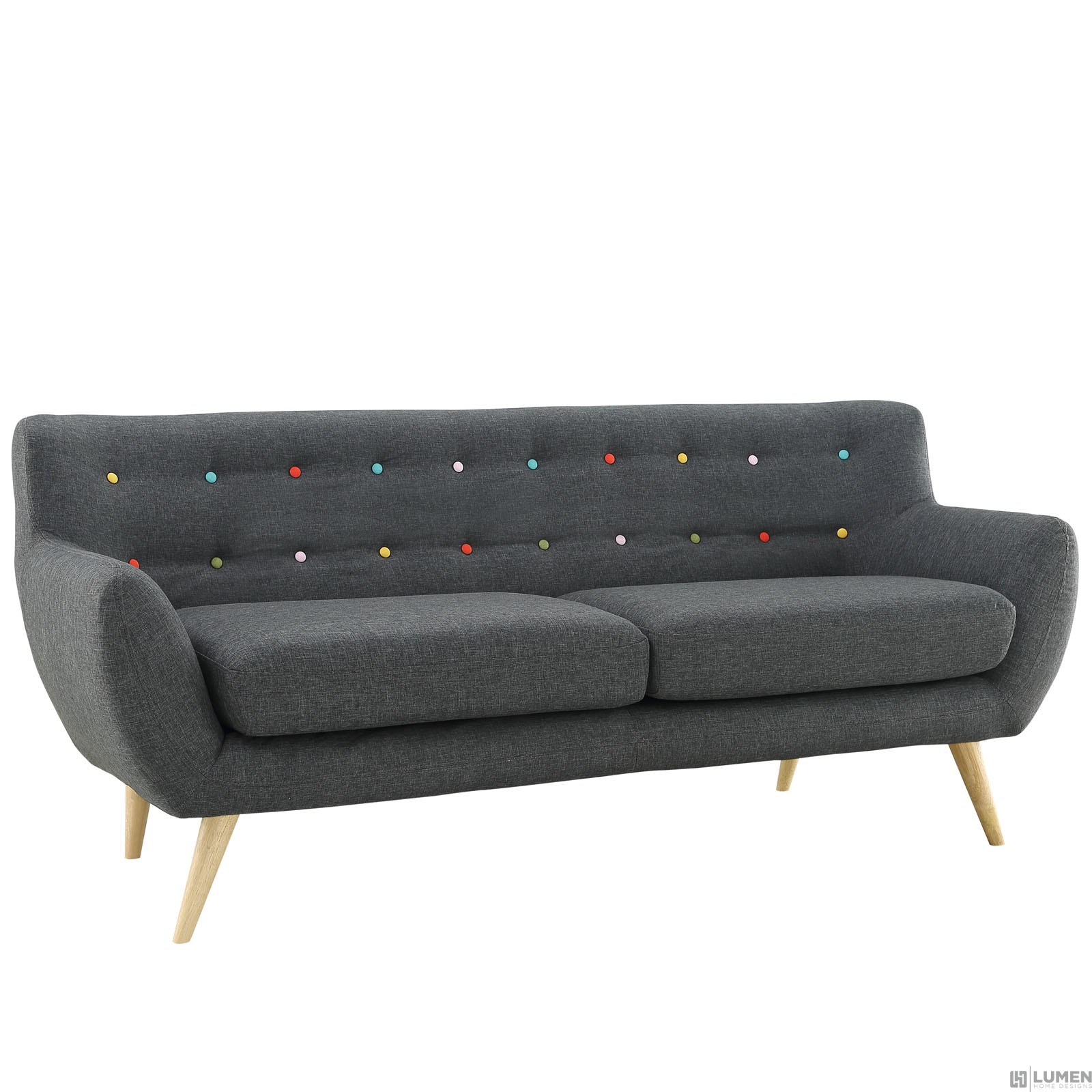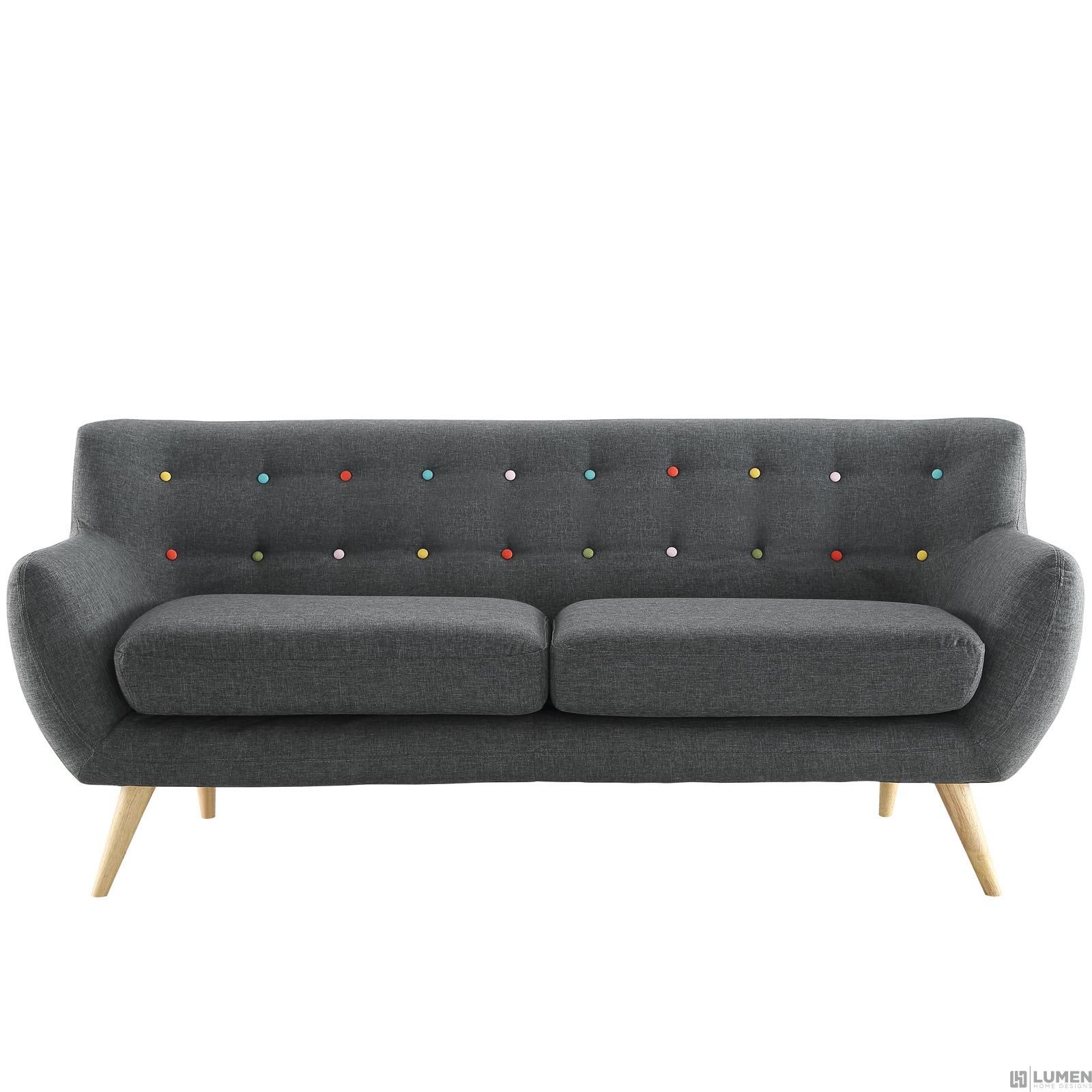 Short Description Mid-century modern style Sofa Natural color rubber wood legs Non-marking foot caps 100% polyester material Chair Weight Capacity - 662 lbs. No assembly required Flame Retardant Foam