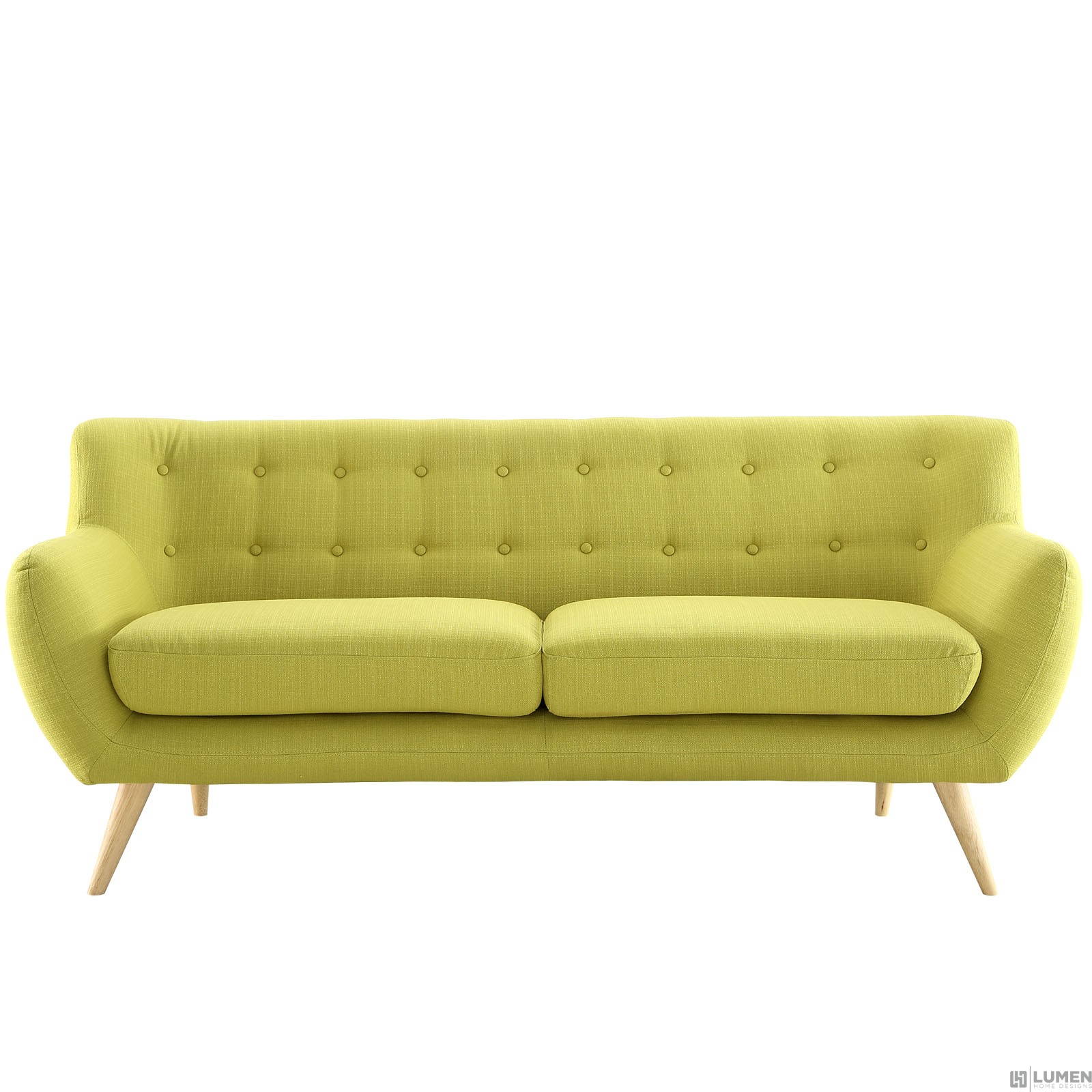 Mid-century modern style Sofa Natural color rubber wood legs Non-marking foot caps 100% polyester material Chair Weight Capacity - 662 lbs. No assembly required Flame Retardant Foam