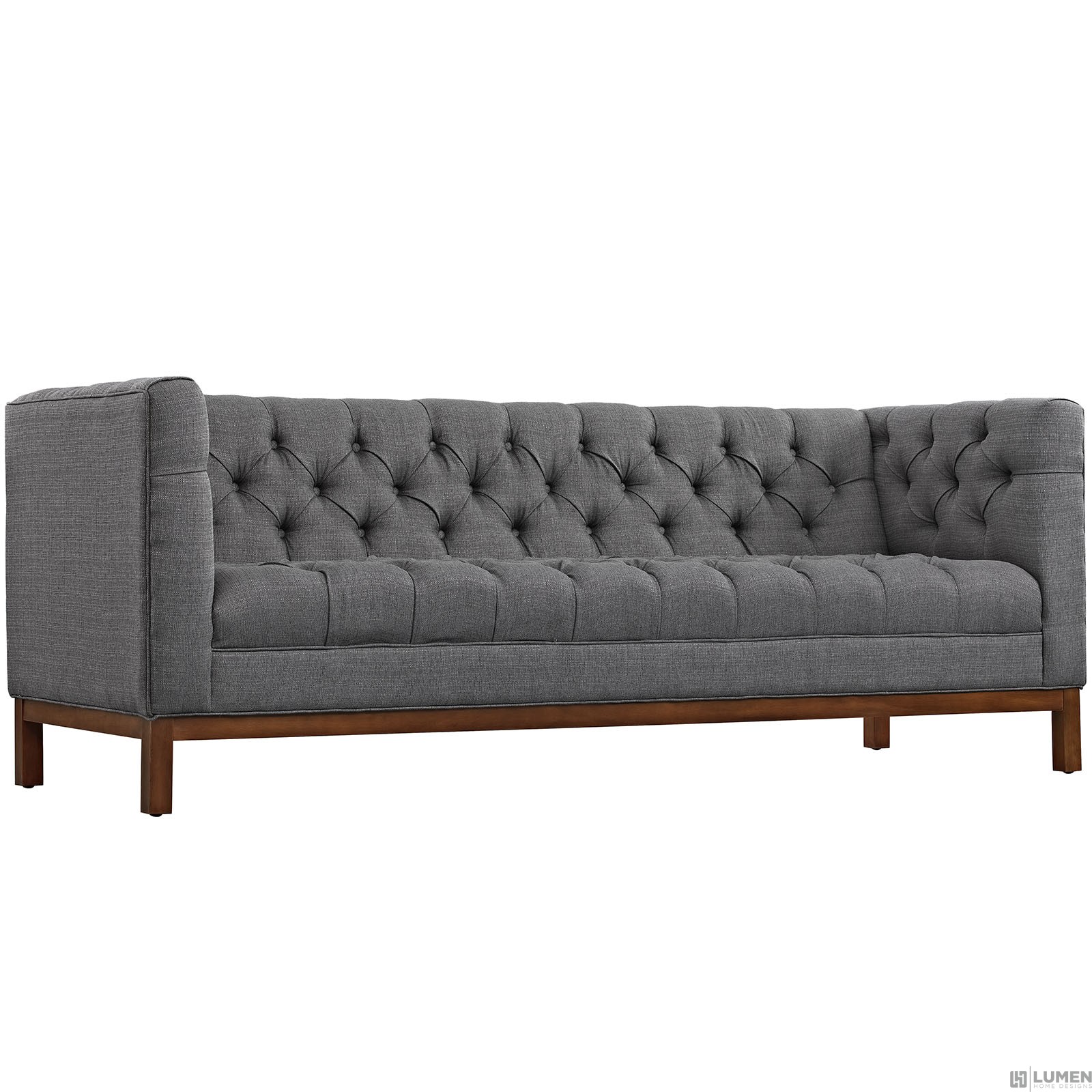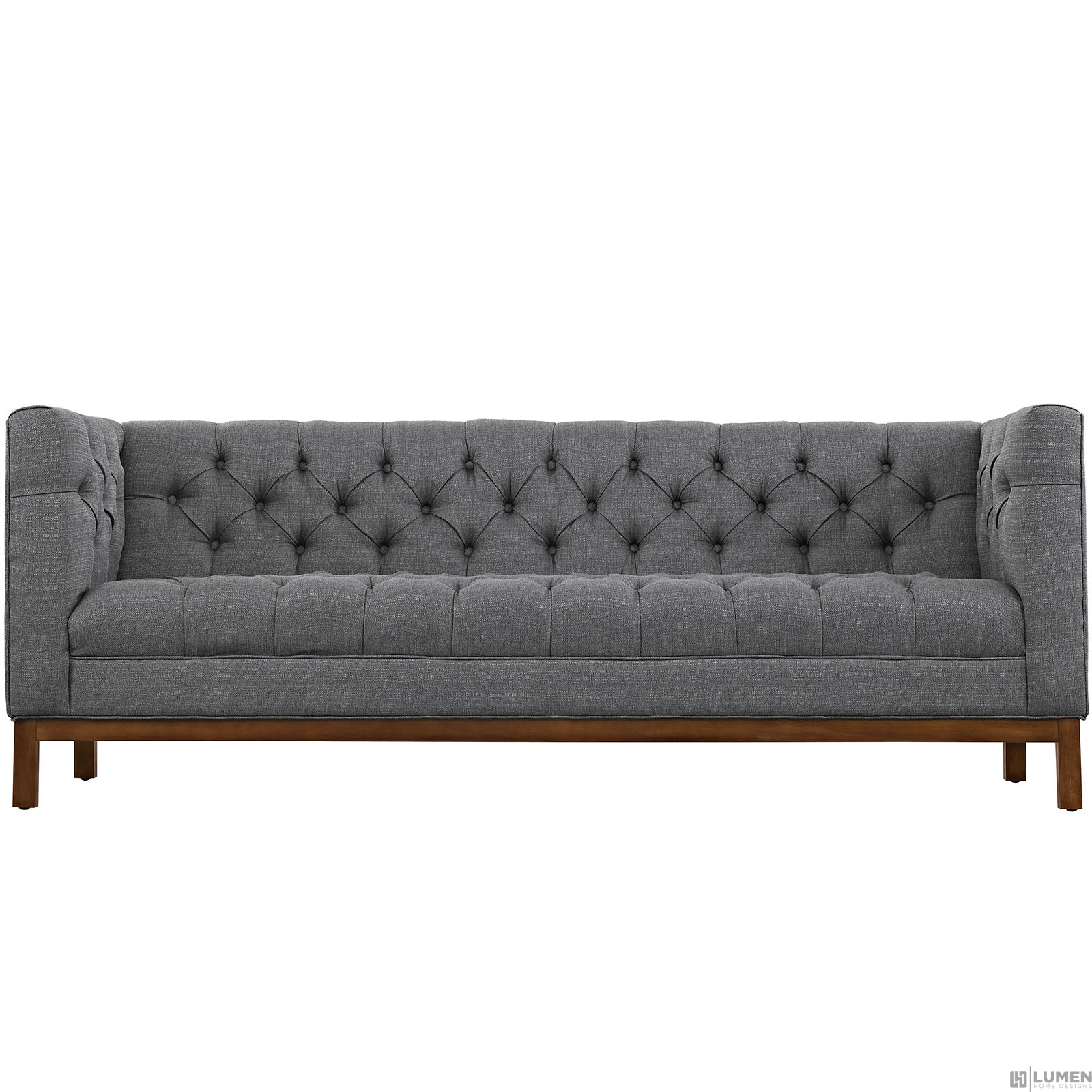 Short Description Walnut Stained Beech Wood Legs Plastic Floor Glides Finely Upholstered Fabric Sofa Weight Capacity - 1323