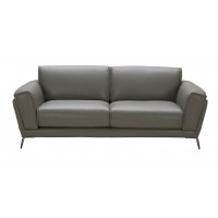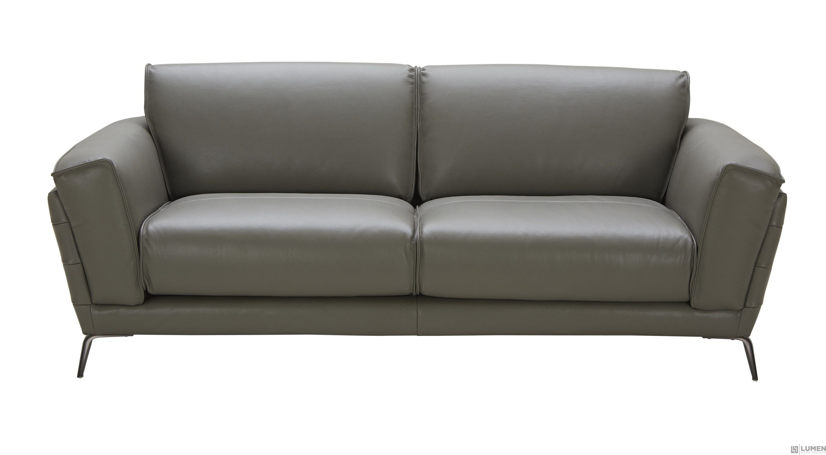 Short Description Our supple leather sofa is a handsome update to traditional couch design. It features loose back seat cushions for the best in style and comfort. This sofa comes all upholstered in durable Italian leather, with an added topcoat to ward off stains and spills. Strong stainless steel legs complete the look. The dimensions of this retro cool couch make it suitable for spaces of any size, as a standalone piece or to complement any existing furniture. It can comfortably sit up to two people. This sofa is available in neutral grey. Essentials about this piece: • Expertly upholstered in authentic Italian leather. • High elastic springs. • High density foam. • Some assembly required. • Color scheme: Grey. • Dimensions: 33" H x 84" L x 36" D. • Each sofa sold separately.