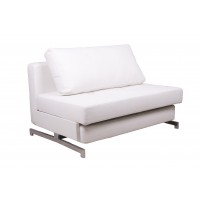 Short Description If you need an extra seating option in your living room, this compact minimalist sofa will fit in perfectly with your existing furniture. Its clean contemporary lines can be dressed either up or down through additional decorative pillows. And at the end of the day, this piece quickly converts into a comfy bed. The dimensions of this modern sleeper make it suitable for smaller spaces, especially those in need of doubly duty furnishings. Pick and choose your match! This sofa is available in black or white. Essentials about this piece: • Expertly upholstered in premium leatherette. • Stainless steel legs. • Some assembly required. • Color scheme: Black or white. • Dimensions: 27.6" H x 47.3" L x 36.2" D.