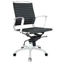 Short Description Modern Mid Back Office Chair Chrome-plated aluminum frame Ribbed vinyl cushioning Tension control knob and lock 360 Degree Swivel Five dual-wheeled casters Fully height adjustable