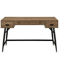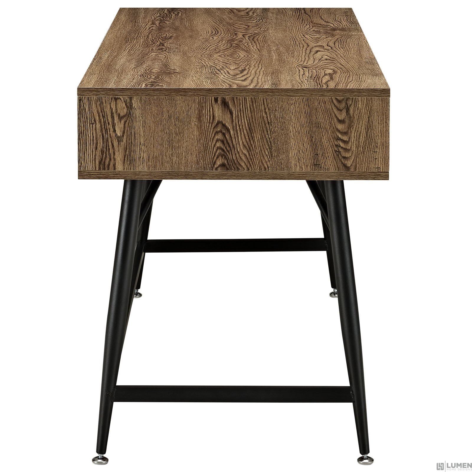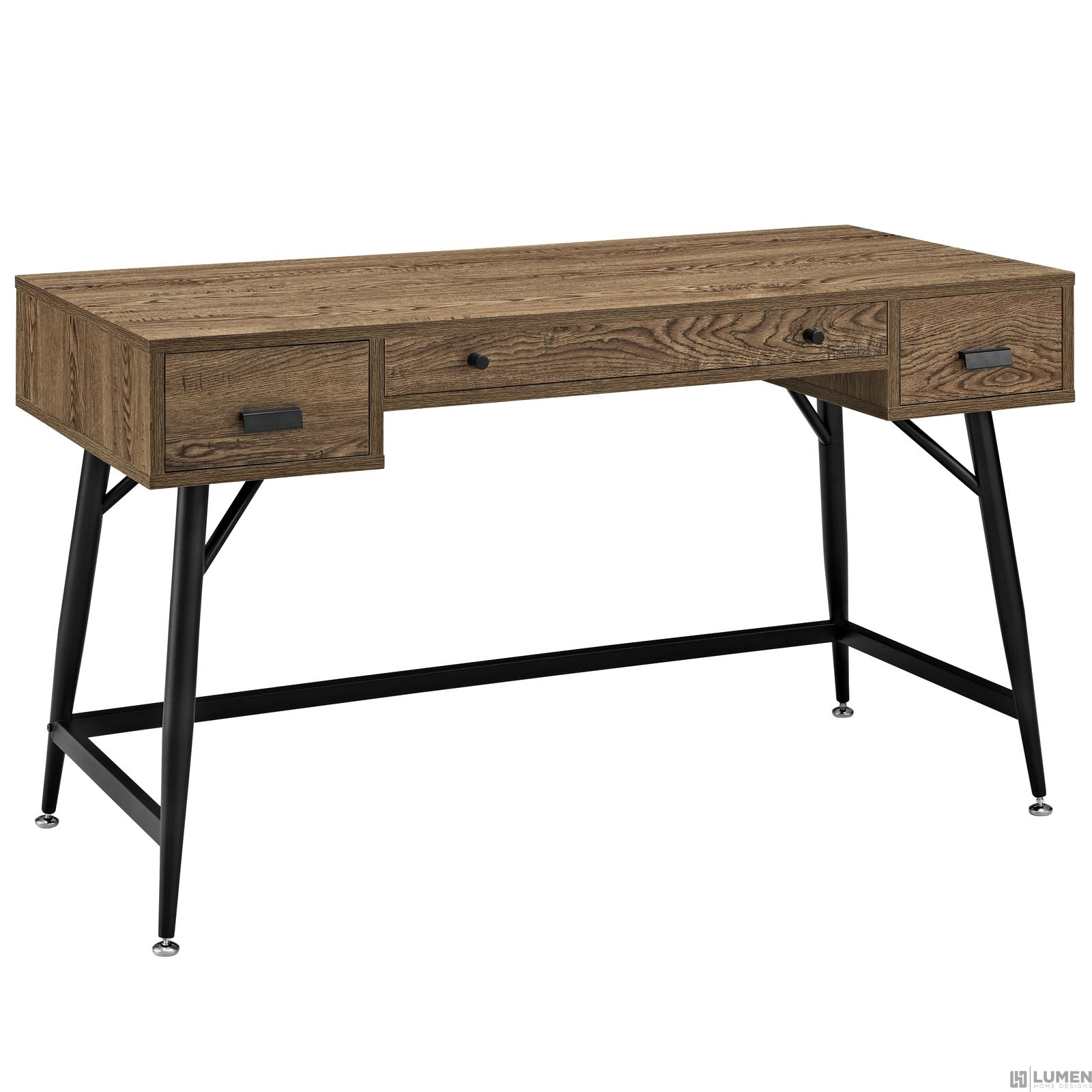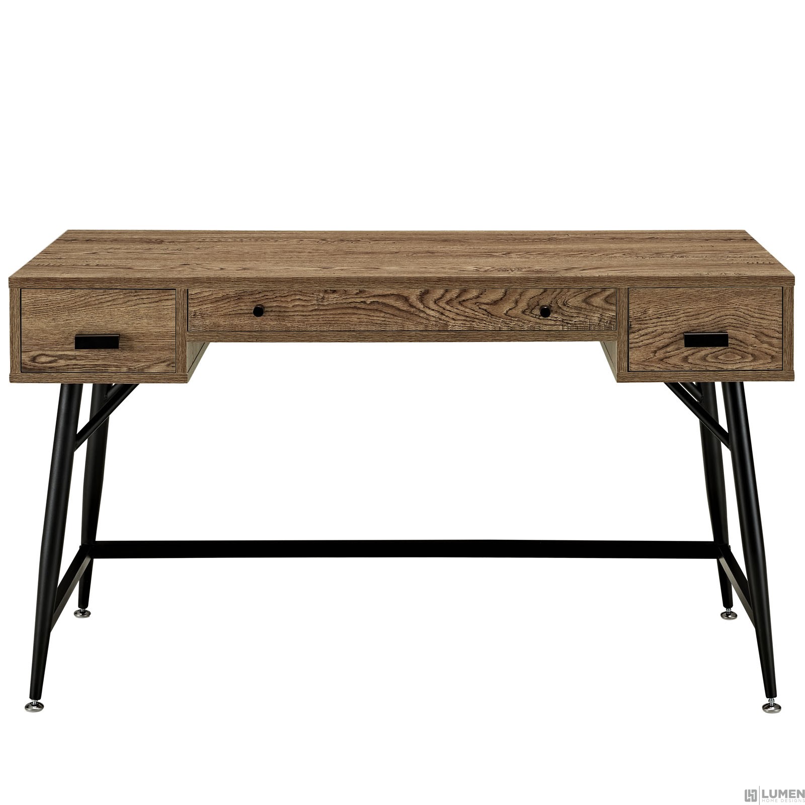 Short Description Industrial modern desk Wood-grain patterned melamine top Powder-coated black steel legs Right and left storage drawers Elongated center drawer Adjustable foot glides Assembly Required