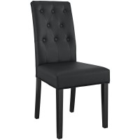 Modern dining chair Upholstered in faux leather Dense foam padding for comfort Rubberwood and pine frame Solid rubberwood legs Non-marking foot caps Assembly required