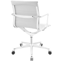 Mid-century modern office chair Padded vinyl ribbed back and seat Polished chrome aluminum base Five dual-wheel steel casters 360 degree swivel Wipe clean surface Assembly Required