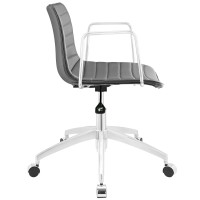 Short Description Mid-century modern office chair Padded vinyl ribbed back and seat Polished chrome aluminum base Five dual-wheel steel casters 360 degree swivel Pneumatic height adjustment Assembly Required