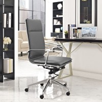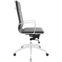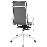 Mid-century modern office chair Padded vinyl ribbed back and seat Polished chrome aluminum base Five dual-wheel steel casters 360 degree swivel Pneumatic height adjustment Assembly Required