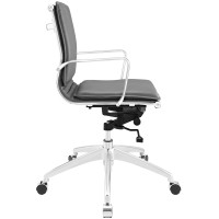 Short Description Mid-century modern office chair Padded vinyl ribbed back and seat Polished chrome aluminum base Five dual-wheel steel casters 360 degree swivel Pneumatic height adjustment Assembly Required