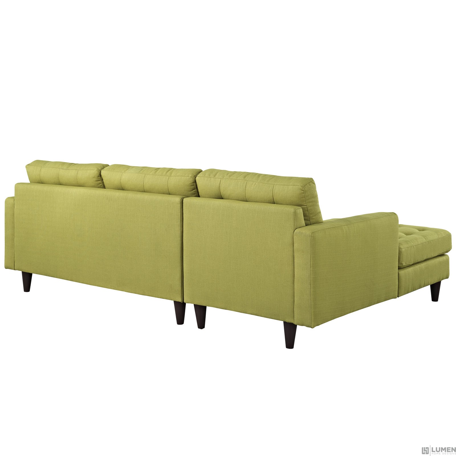 Short Description Modern left-side chair and loveseat Deeply tufted buttons Fine polyester upholstery Plastic foot glides Solid rubberwood legs Spot clean only Some assembly required