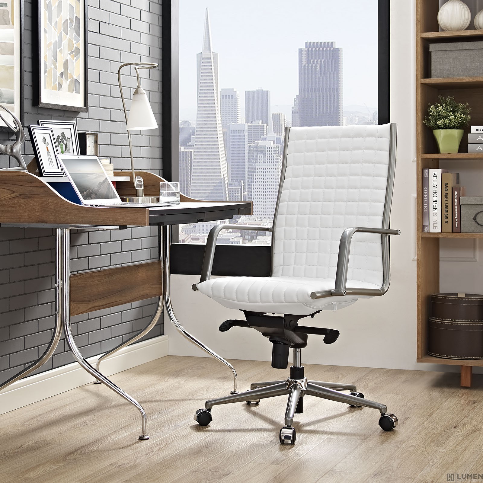 Short Description Polished Steel Armrests and Base Padded Vinyl Upholstery Five Dual-Wheel Nylon Casters "Height Adjustable, Full Swivel" Chair Weight Capacity: 331 lbs. Tension Knob / Assembly Required