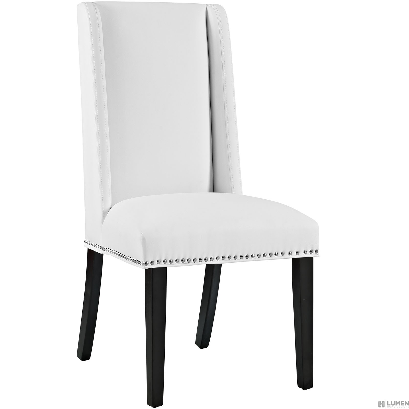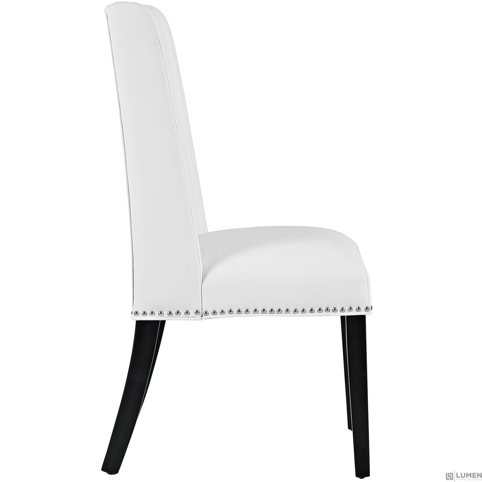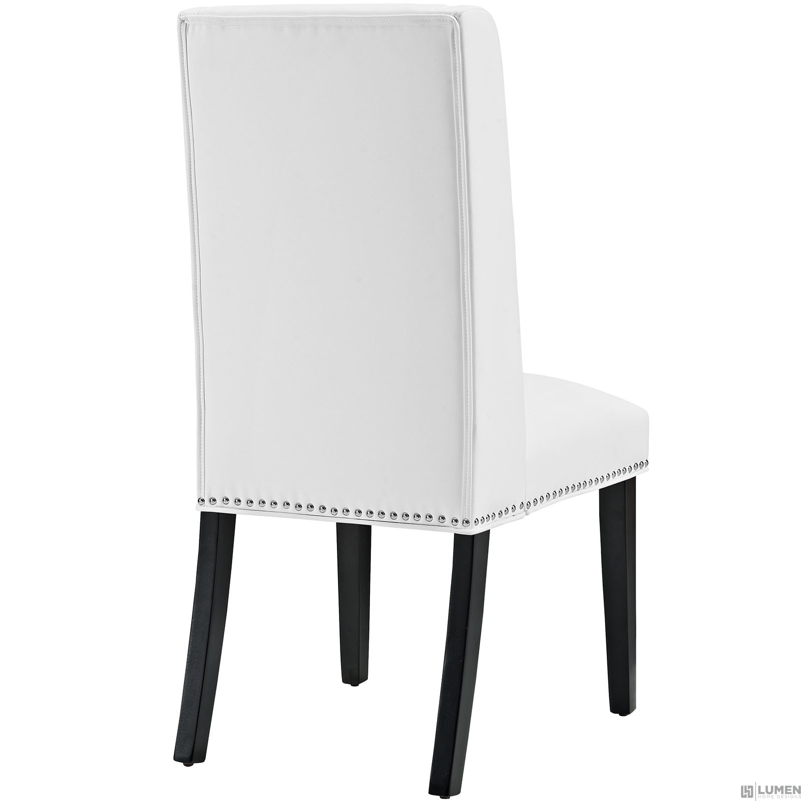 Short Description Elegant Modern Dining Side Chair Dense Foam Padding for Comfort Antique Copper Nailhead Trim Solid Rubberwood Legs Non-Marking Foot Caps Fine Vinyl Upholstery Assembly Required