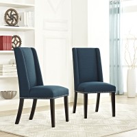 Short Description Elegant Modern Dining Side Chair Dense Foam Padding for Comfort Polished Nailhead Trim Solid Rubberwood Legs Non-Marking Foot Caps Fine Polyester Fabric Upholstery Assembly Required