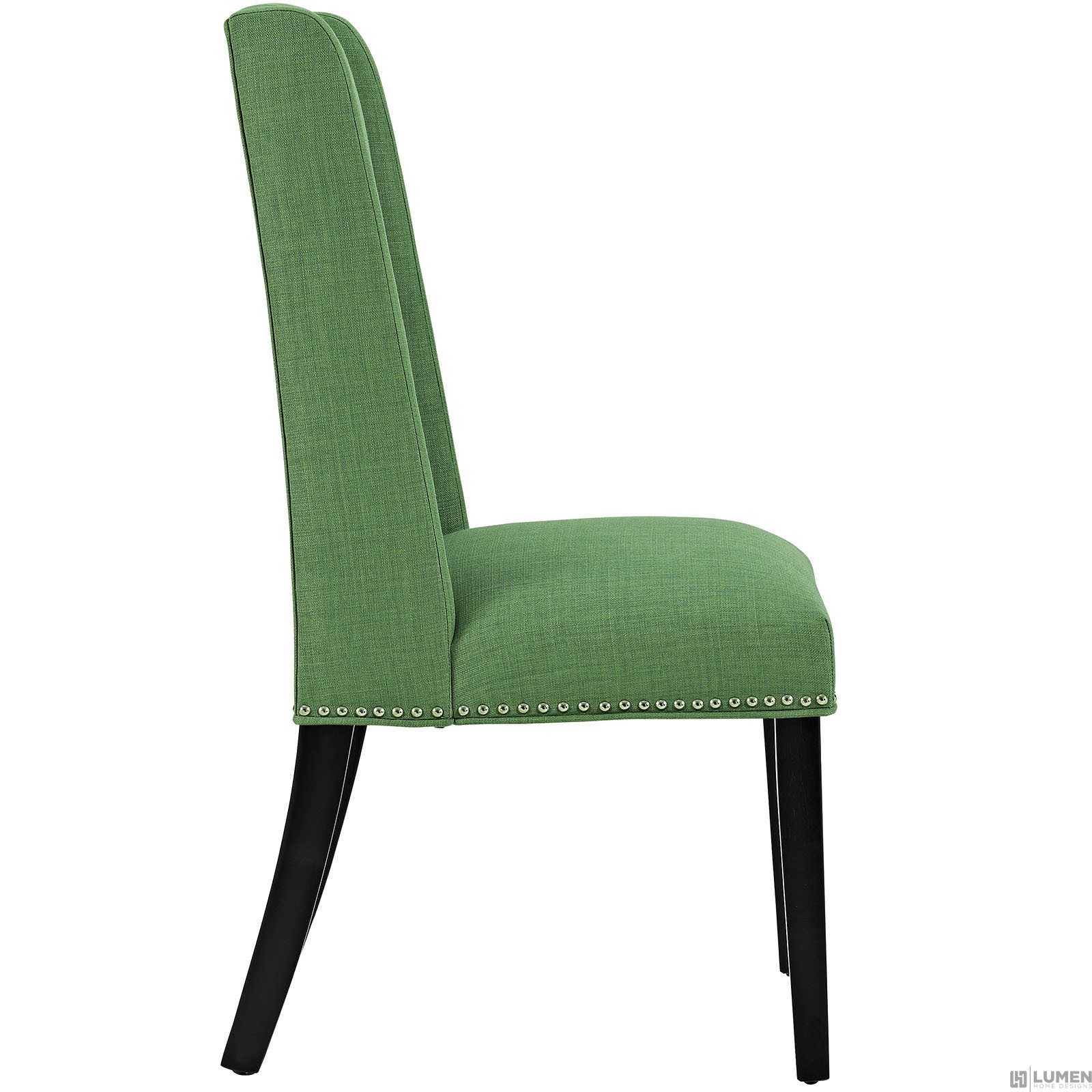 Short Description Elegant Modern Dining Side Chair Dense Foam Padding for Comfort Polished Nailhead Trim Solid Rubberwood Legs Non-Marking Foot Caps Fine Polyester Fabric Upholstery Assembly Required
