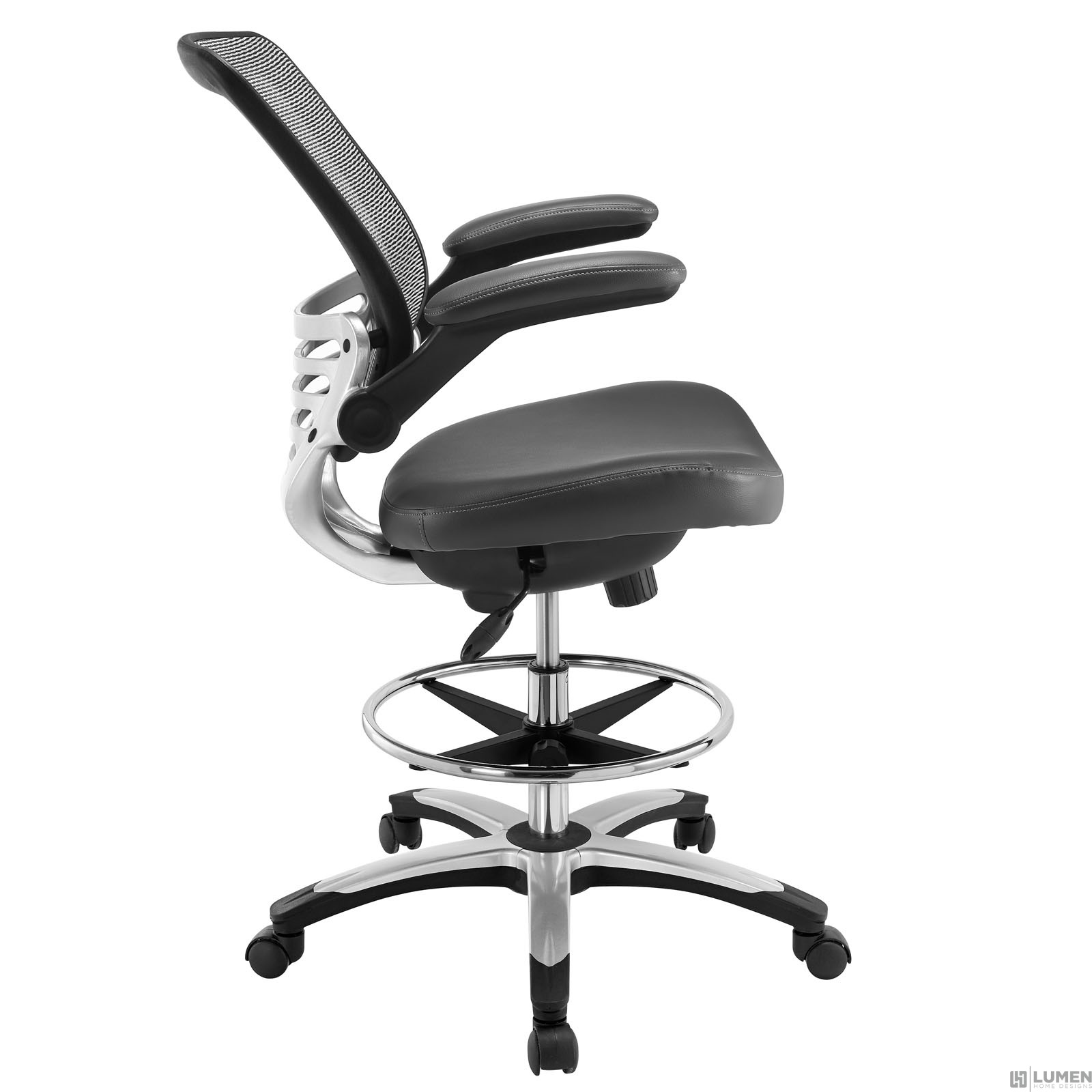 Short Description Breathable mesh back Sponge seat covered with leatherette Seat tilt with tension control Adjustable Seat Height Chrome foot ring Flip-up padded arms Dual-Wheel Casters