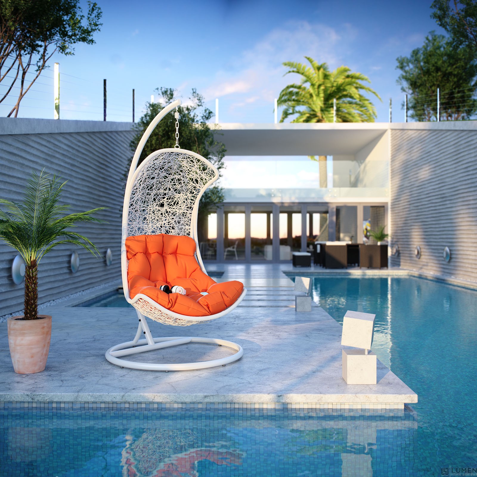 Short Description Steel outdoor stand in white finish Durable powder-coated surface All-weather synthetic woven rattan base Water resistant fabric cushions Assembly required