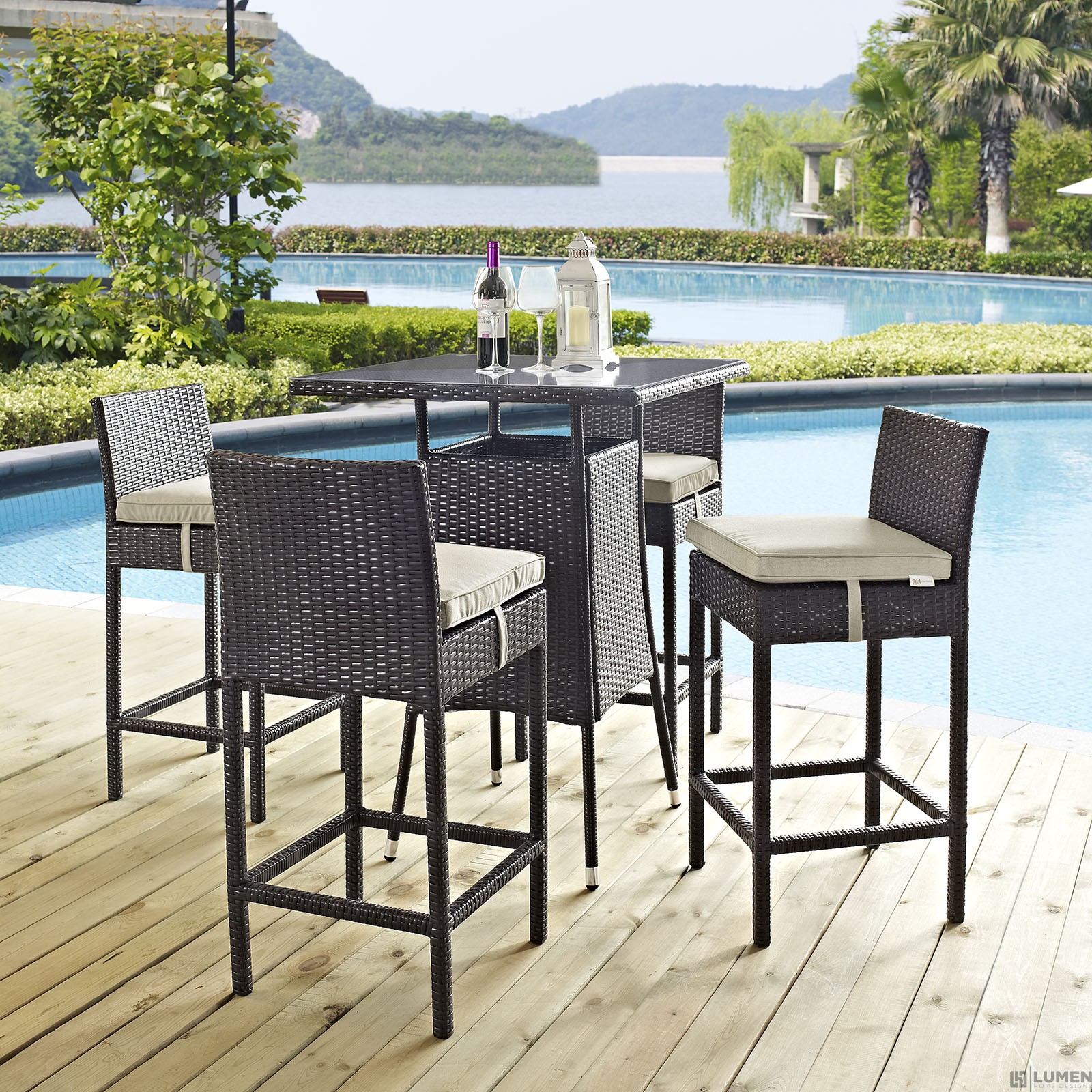 Product Dimensions Overall Bar Table Dimensions: 21"L x 52"W x 41"H Overall Bar Stool Dimensions: 19.5"L x 17.5"W x 39"H Seat Dimensions: 16.5"L x 17.5"W x 27.5"H Backrest Dimensions: 1"W x 10.5"H Cushion Thickness: 1"W
