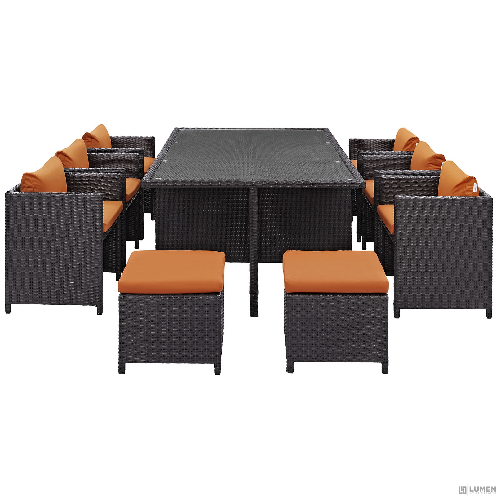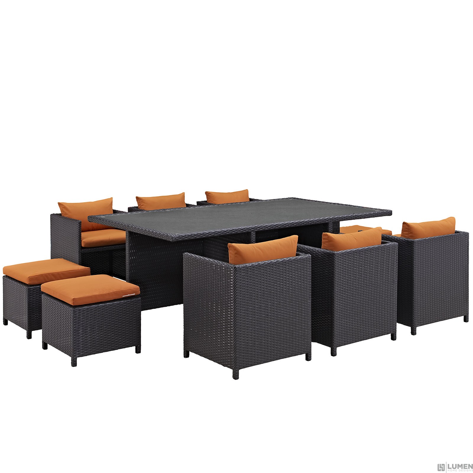 Product Dimensions Overall Product Dimensions: 116"L x 95"W x 29.5"H Table Dimensions: 82.5"L x 49.5"W x 29.5"H Stool Dimensions: 19"L x 19"W x 17"H Chair Dimensions: 24"L x 21.5"W x 26.5"H Armrest Dimensions: 1.5"W x 26.5"H Backrest Height: 26.5"H Seat Height: 17"H Cushion