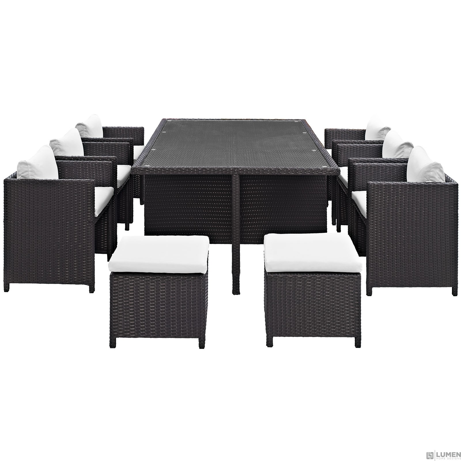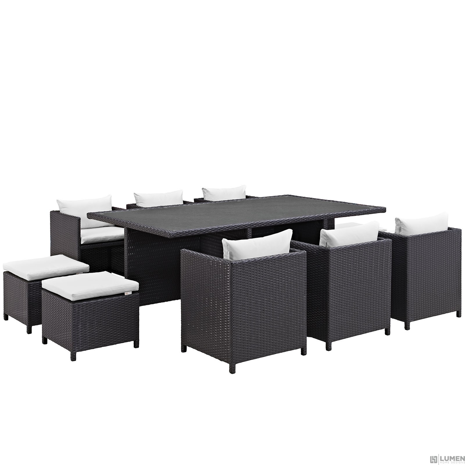 Product Dimensions Overall Product Dimensions: 116"L x 95"W x 29.5"H Table Dimensions: 82.5"L x 49.5"W x 29.5"H Stool Dimensions: 19"L x 19"W x 17"H Chair Dimensions: 24"L x 21.5"W x 26.5"H Armrest Dimensions: 1.5"W x 26.5"H Backrest Height: 26.5"H Seat Height: 17"H Cushion