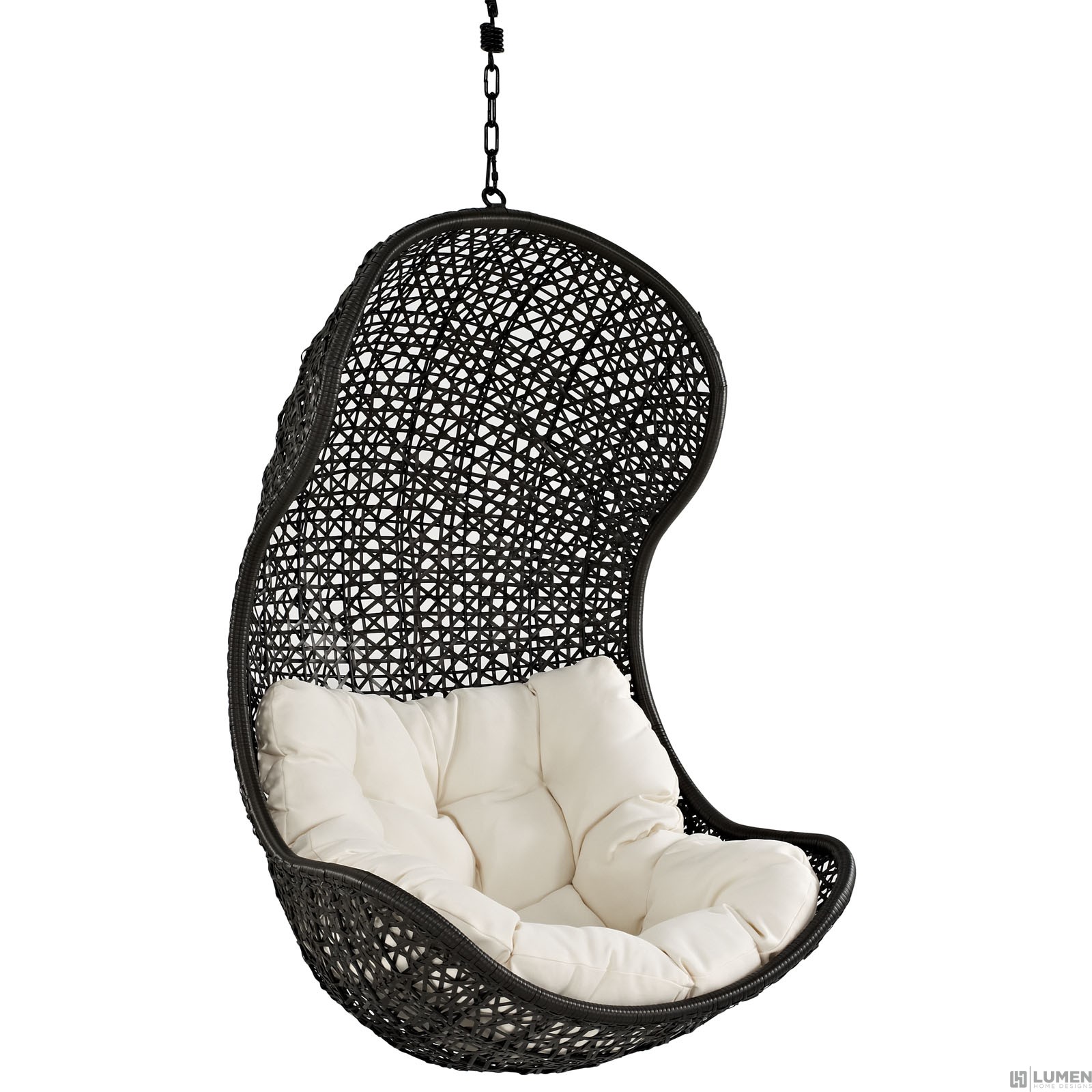 Steel outdoor stand in black finish Durable powder-coated surface All-weather synthetic woven rattan base Water resistant white fabric cushions Assembly required Weight Capacity: 265 Pounds