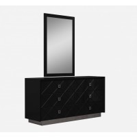 Short Description Keeping with a midnight theme, Lumen Home Designs introduces the Zara bedroom set, available in either king or queen. All 5 pieces rest upon shiny chrome stainless steel supports while the Zara’s beveled design has an added touch of crocodile patterned eco-leather which makes it way through the bed, nightstands, dresser and chest. Also included is the mirror. Amidst the crocodile patterned design are authentic Swarovski crystals which outline the handles on this stunning set from Lumen Home Designs.MDF Eco-Leather Chromed Stainless Steel Sworovski Crystal