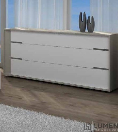 Short Description Solo by name, yet quantitative by features, the Solo bed set has found its way into the bedrooms of  many who seek something truly unique. The bed itself features a curvy and appealing headboard  that extends past the base of the bed and squeezes inward on both sides as well as the top, giving  the Solo bed its one of a kind design. The headboard is upholstered in a finely textured grey  colored fabric with the base being matte finished white colored veneer. Esoteric style night stands  and dresser combine grey and white color cues to blend seamlessly around the centerpiece that  is the Solo bed. Both the dresser and night stands feature smooth operating self closing drawers  that will ensure years of flawless operation with minimal wear and tear.MDF, Fabric, Soft Closing Drawer